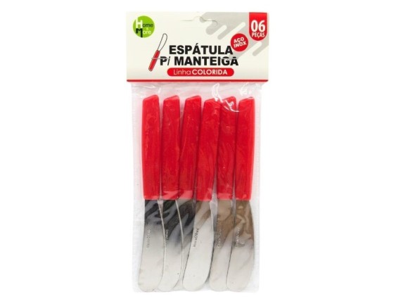 HM340 ESPATULA MANTEIGA CABO PLAST VERMELHA 6 PCS