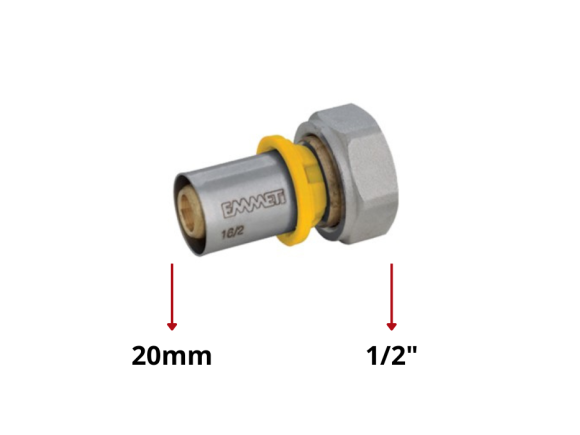 Conector Fêmea com Porca Giratória Gás Multicamada 20mm x 1/2"
