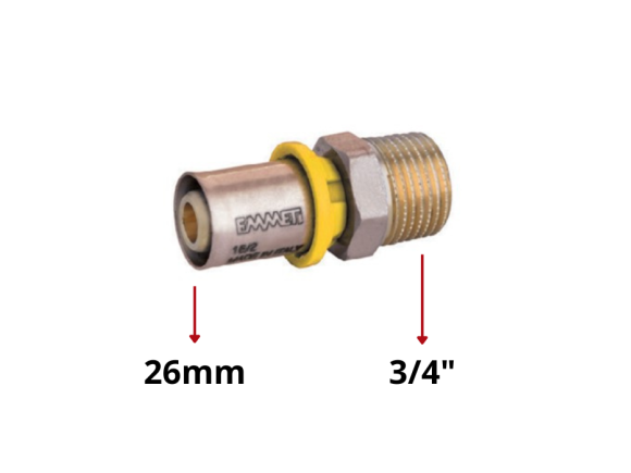Conector Macho Gás Multicamada 26mm x 3/4"