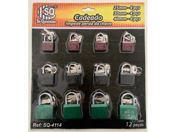 SQ4114 CARTELA CADEADO 25/30/40 DUZIA