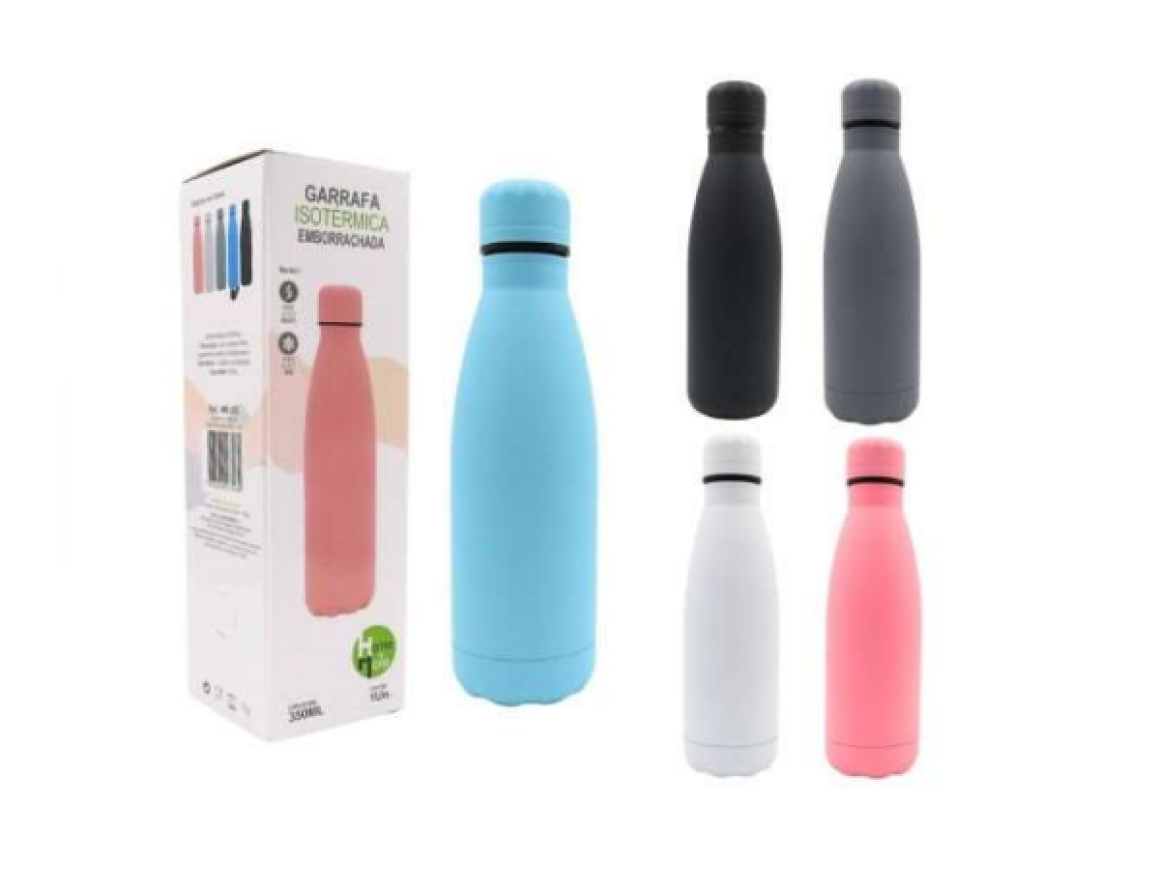 HM382 GARRAFA ISOTERMICA EMBORRACHADA INOX 350ML