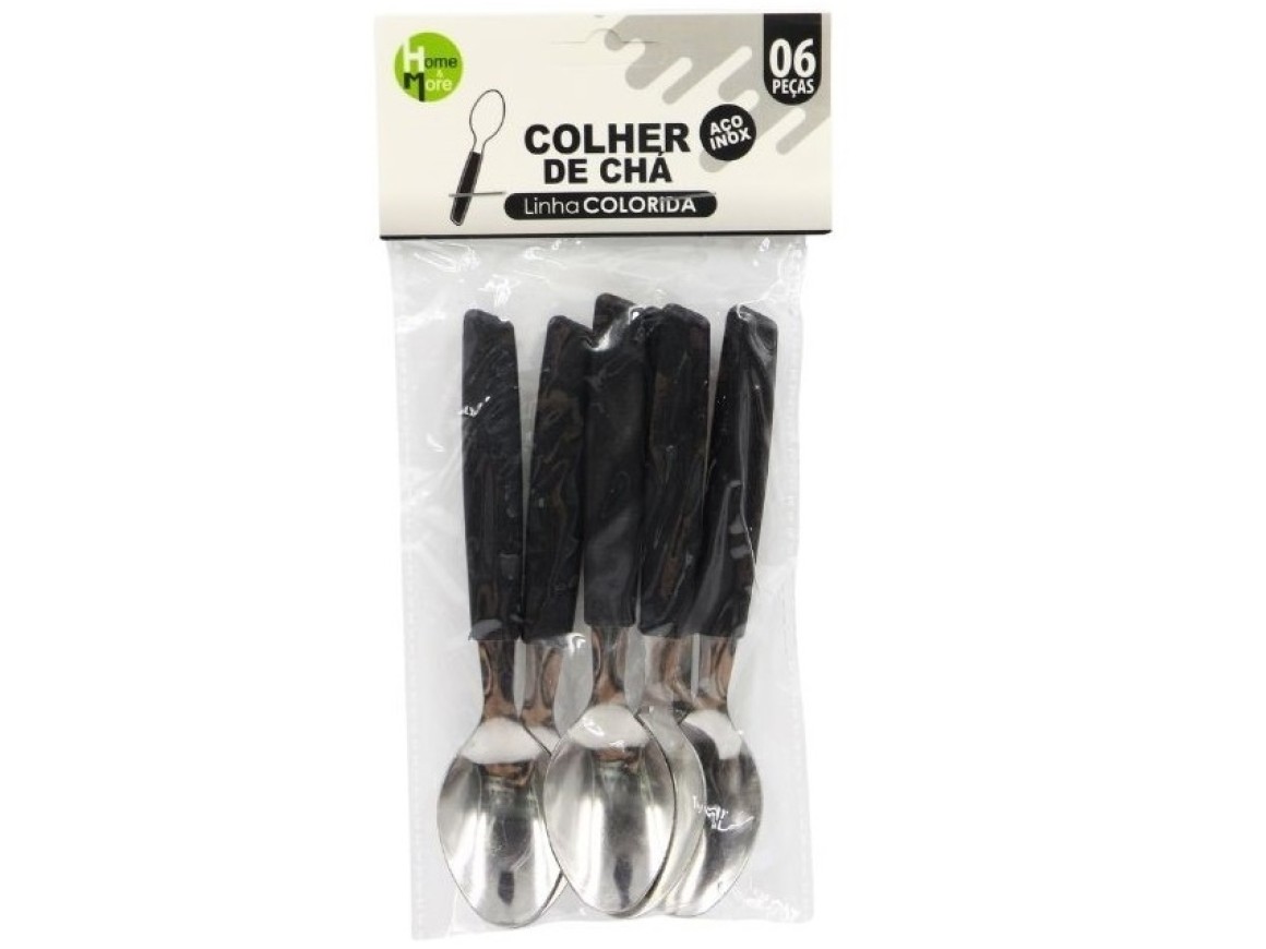 HM353 COLHER CHA CABO PLAST PRETO 6 PCS
