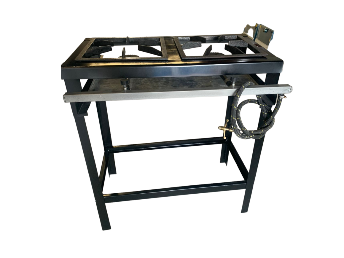 Equipado com 2 (dois) queimadores simples (100mm), este fogão industrial da Cozinha Gourmet Fogões foi projetado para suportar grandes demandas em uso sem se deteriorar, dando ênfase na qualidade da estrutura e produção dos alimentos que requer mais tempo para cozer(cozinhar). Fogão prático, seguro e fácil de manusear.