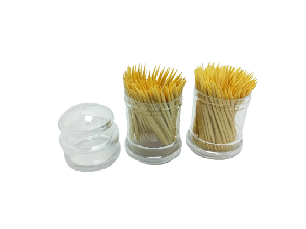 Kit com dois paliteiros em Acrílico com 100 palitos cada para uso em restaurantes, lanchonetes, bares e também domésticos.