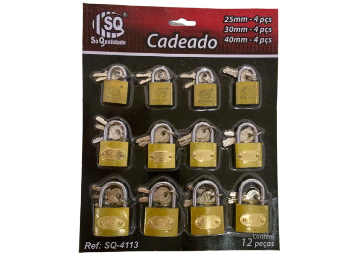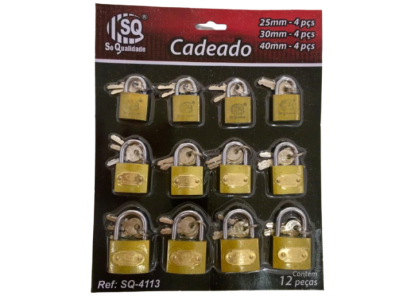 SQ4113 CARTELA CADEADO 25/30/40 DUZIA
